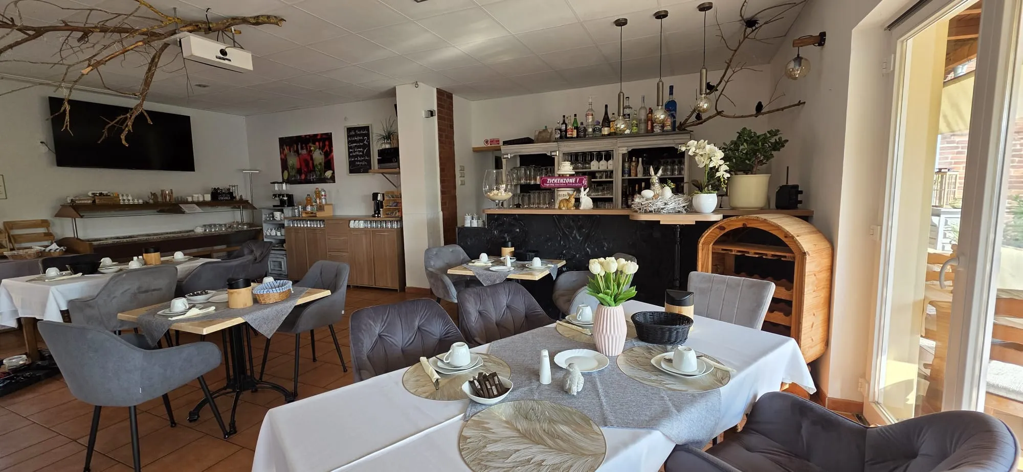 Von April bis Oktober servieren wir Ihnen morgens in unserem gemütlichen Gastraum ein reichhaltiges Frühstück von 8:00 bis 10:00 Uhr – damit Sie entspannt und gestärkt in den Tag starten können.